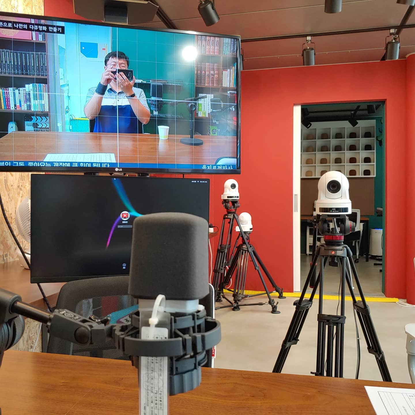 그래서 영상용 와이어리스 마이크 3대를 가지고 중계를 진행했습니다.