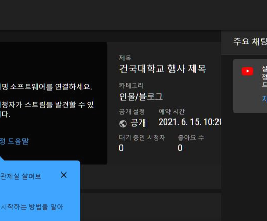 유튜브 스트리밍 예약하고 링크 공유하기