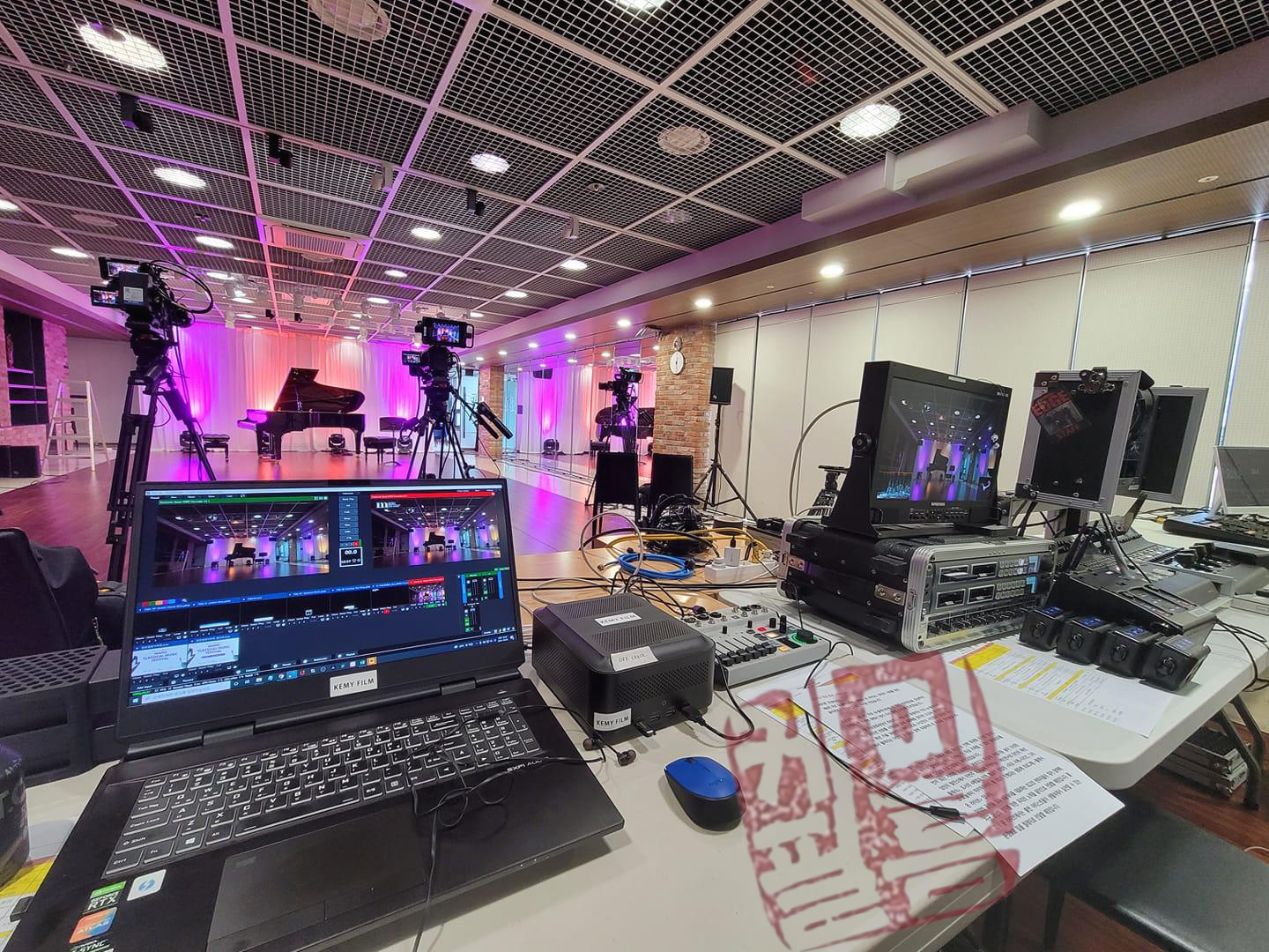 소규모 공연의 경우 예산 등의 이슈로 인해 ENG 시스템으로 가기에 부담이 있기 마련입니다. 카메라 감독님들 용도의 별도 리턴신호와 모니터 세팅 후 진행한 현장입니다.