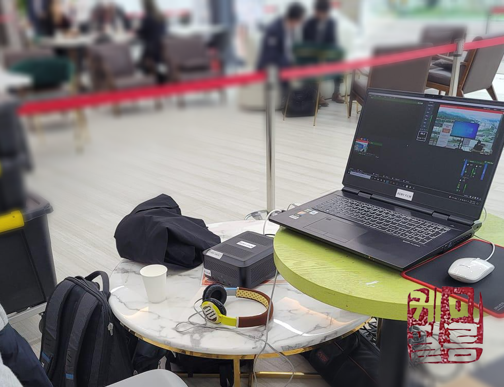 국제 학술대회는 시스템적으로 다소 복잡해집니다. 어쩔 수 없는 일입니다. 동시통역이 들어가야 하고 현장 참가자들용 음향과 함께 방송 송출용 음향도 별도로 내야하기 때문입니다. 이 현장은 중국과의 국제 학술대회 중계였습니다. 기본 줌으로 접속한 상황에서 이를 다시 유튜브로 송출하는 과정을 거쳤습니다. 혹시라도 이런 형식의 행사를 기획중인 고객사에서 케미필름이나 기타 중계 업체에 의뢰하신다면 가능한 행사에 관련된 내용을 전부 말씀해주시는 게 좋습니다. 그에 따라서 중계 기획 자체가 바뀔 수 있기 때문입니다. 가능한 많은 정보를 중계팀에게 전달하는 것. 잊지 마세요.