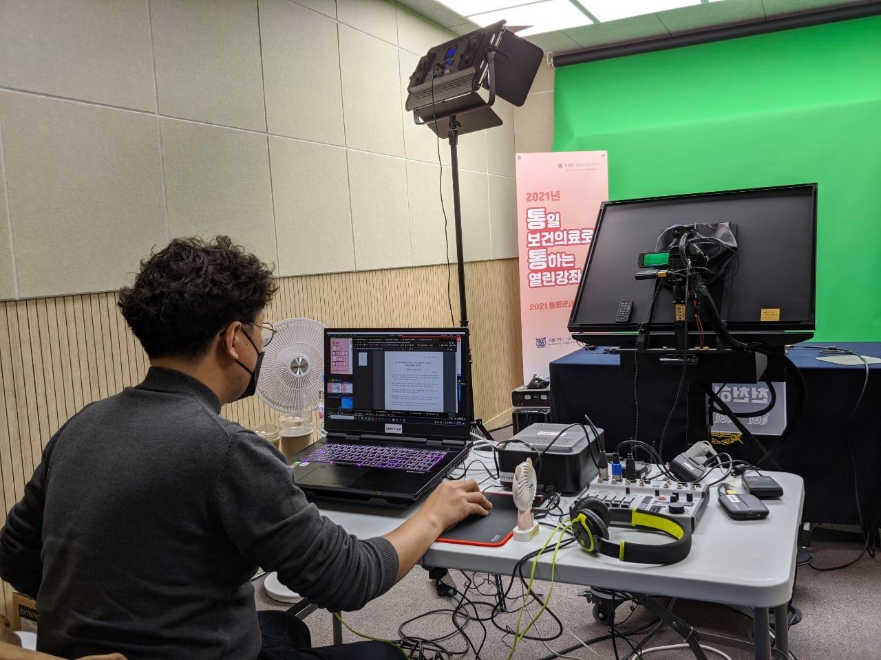 서울의 한 문화재단 행사 중계 현장의 모습입니다.
