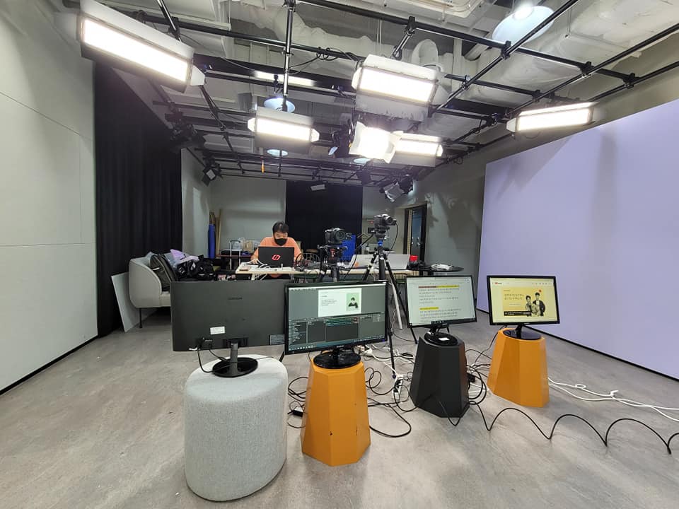 유튜브, 페이스북 등 SNS 플랫폼 중계와 줌 화상회의 업무를 지원하고 있습니다. 소규모 회의로 현장참가자 1인이 진행하는 강연 형식입니다.