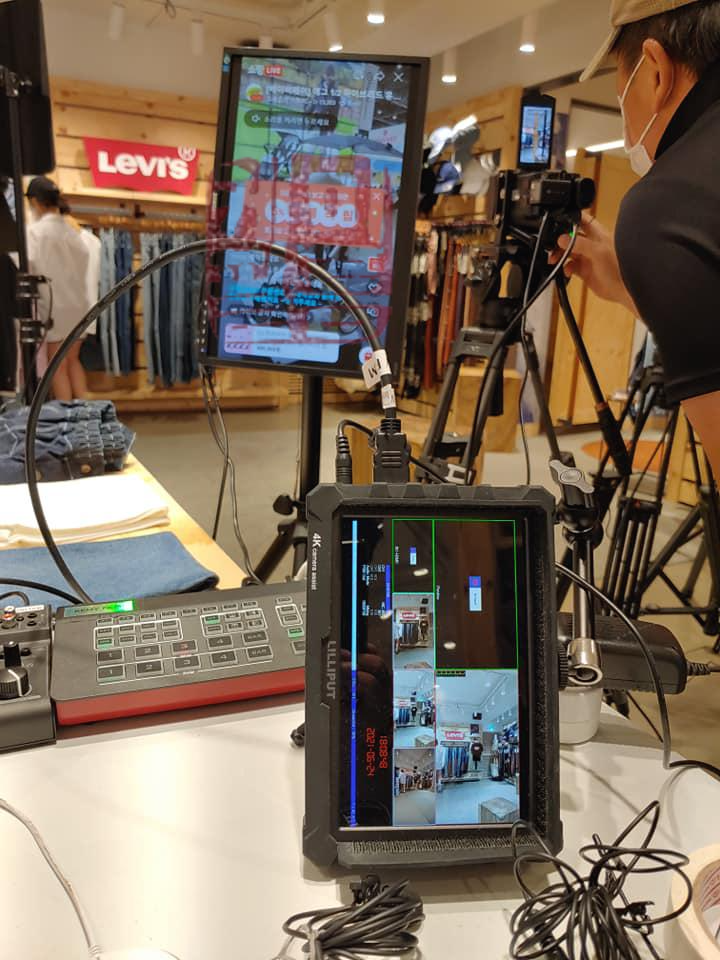사진은 한 청바지 회사의 의뢰로 네이버 쇼핑라이브를 지원해 드렸던 현장입니다. 네이버 쇼핑라이브는 세로방송이 표준규격이므로 모든 세팅은 세로로 ... 진행합니다. ^^