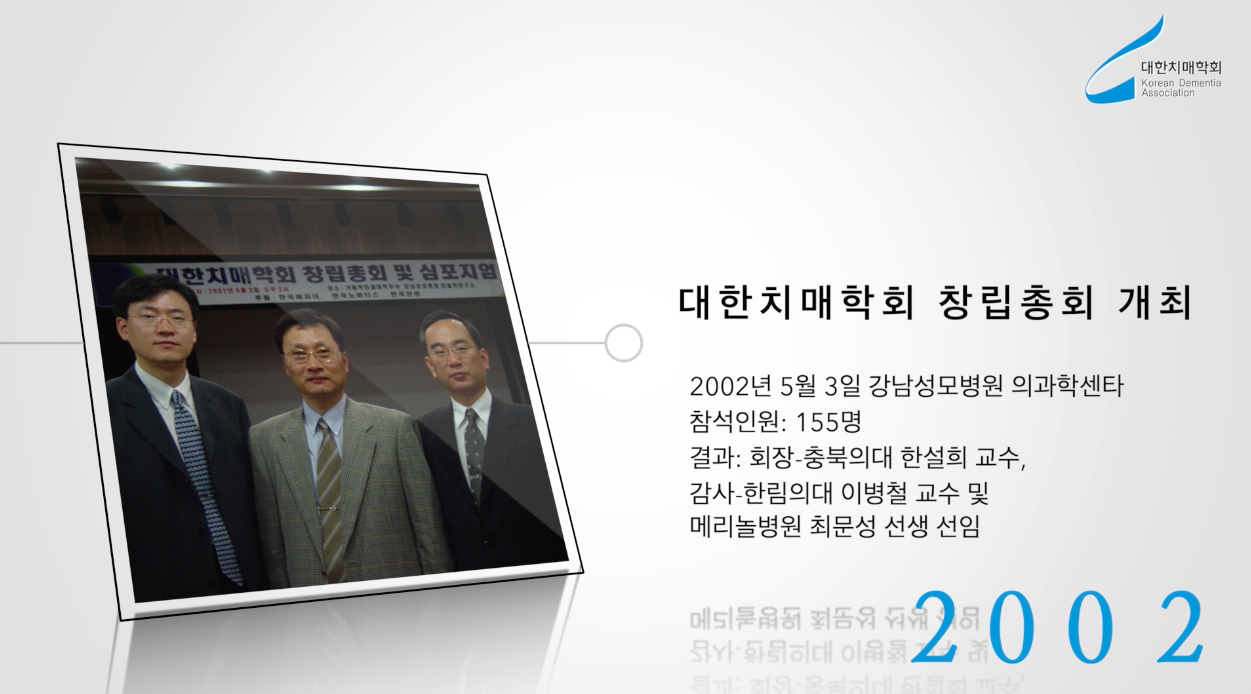 대한치매학회는 월드컵이 열린 해인 2002년 창립 총회 개최를 시작으로 힘찬 발걸음을 내딛었습니다.