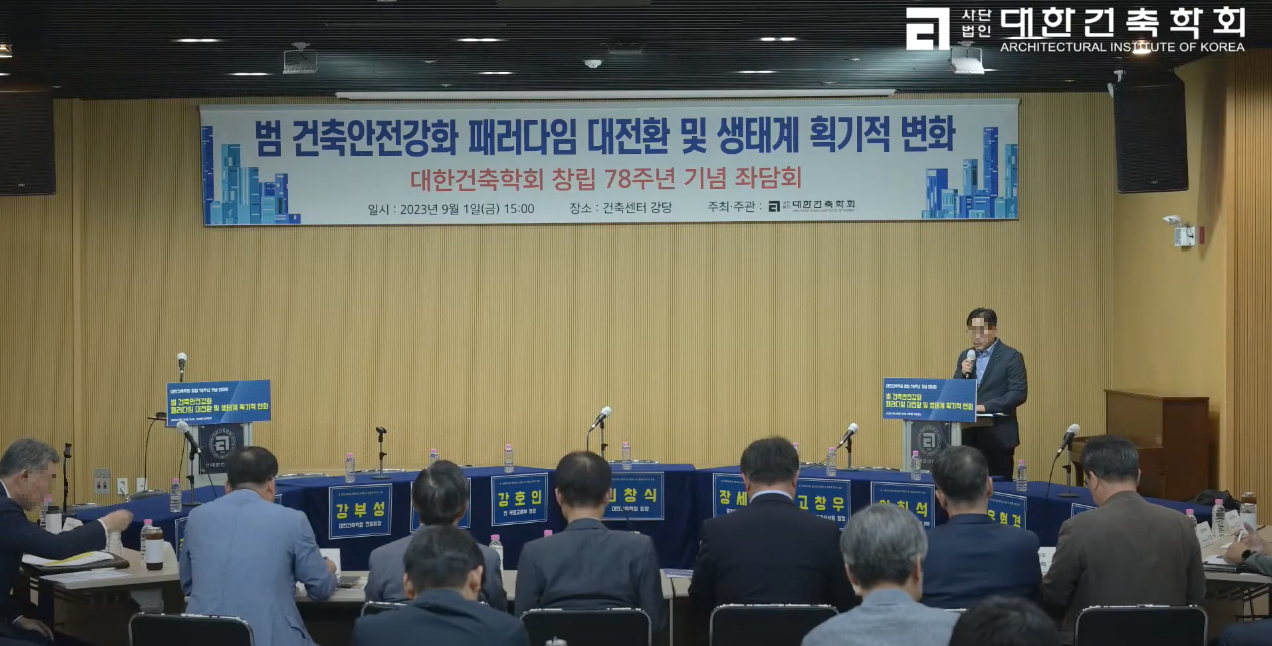 케미필름에는 일반적인 세미나가 아닌 좌담회나 토론회에 대한 중계 요청도 종종 들어오는 편입니다. 이번 포스팅에서 소개해 드릴 행사는 지난 2023년 가을 진행됐던 대한 건축학회의 건축안전강화에 대한 좌담회입니다.
