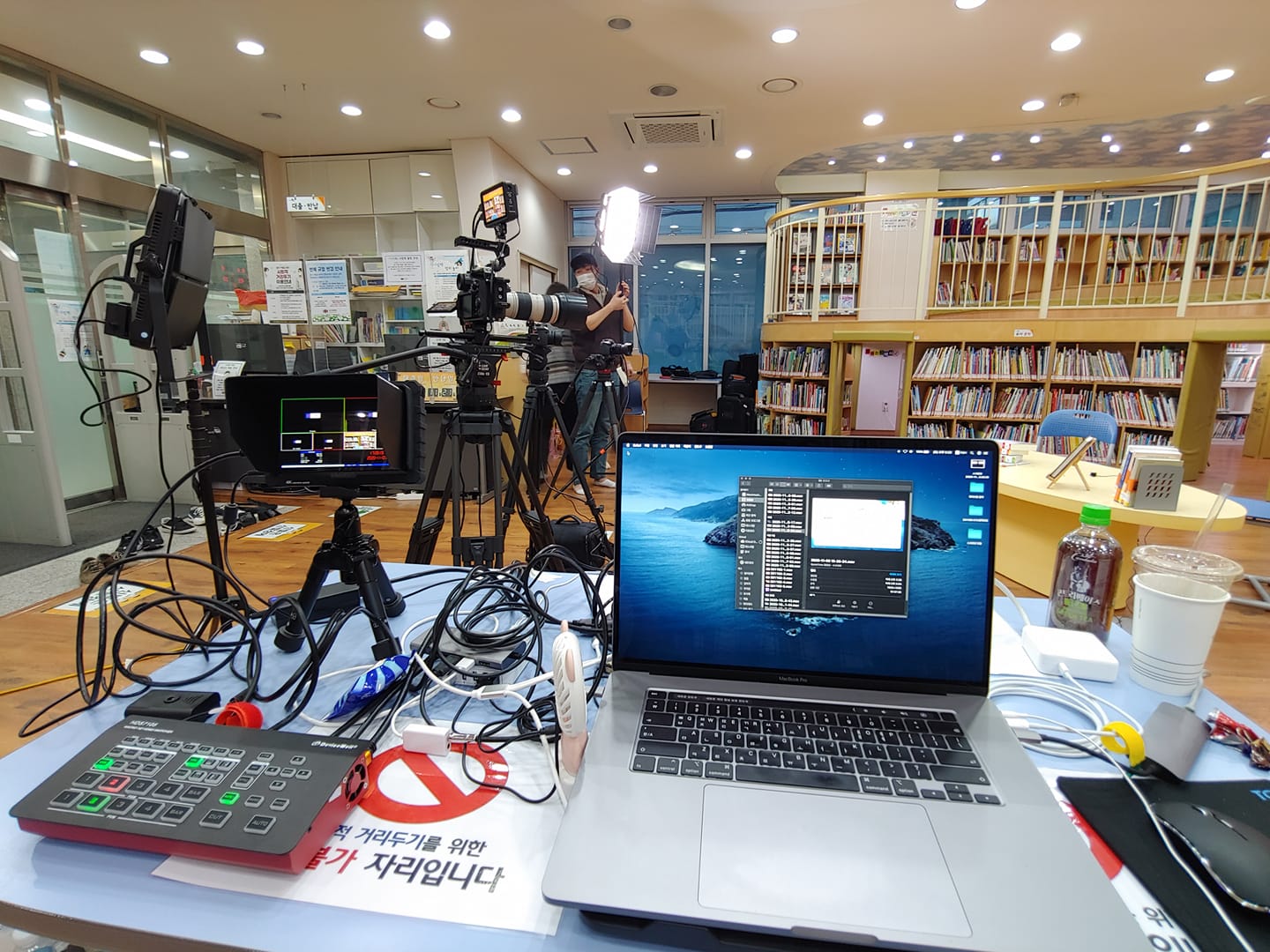 다양한 각도에서 확보된 화면을 통해 보다 역동적인 방송을 구성합니다. 여기에 발표자료(파워포인트, 동영상 등 시청각 자료)가 더해진다면 라이브 방송은 더욱 상호작용이 높아진 콘텐츠로 기여할 것입니다.
